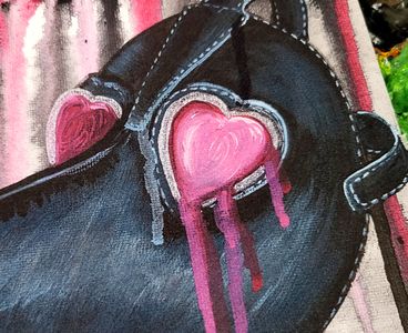 0 savesA fine artist print of an original acrylic painting a plague dr mask with heart shaped eyes.