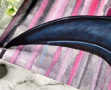 The beautiful teal and black mask against the dripping red, white, pink and grey background really makes it pop!