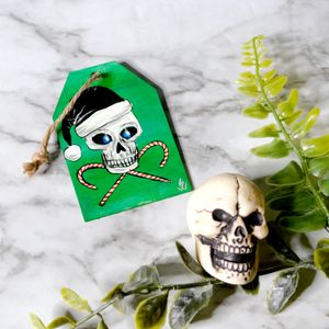0 savesSkelly Clause and Cross Candy Canes Wooden Tag Ornament